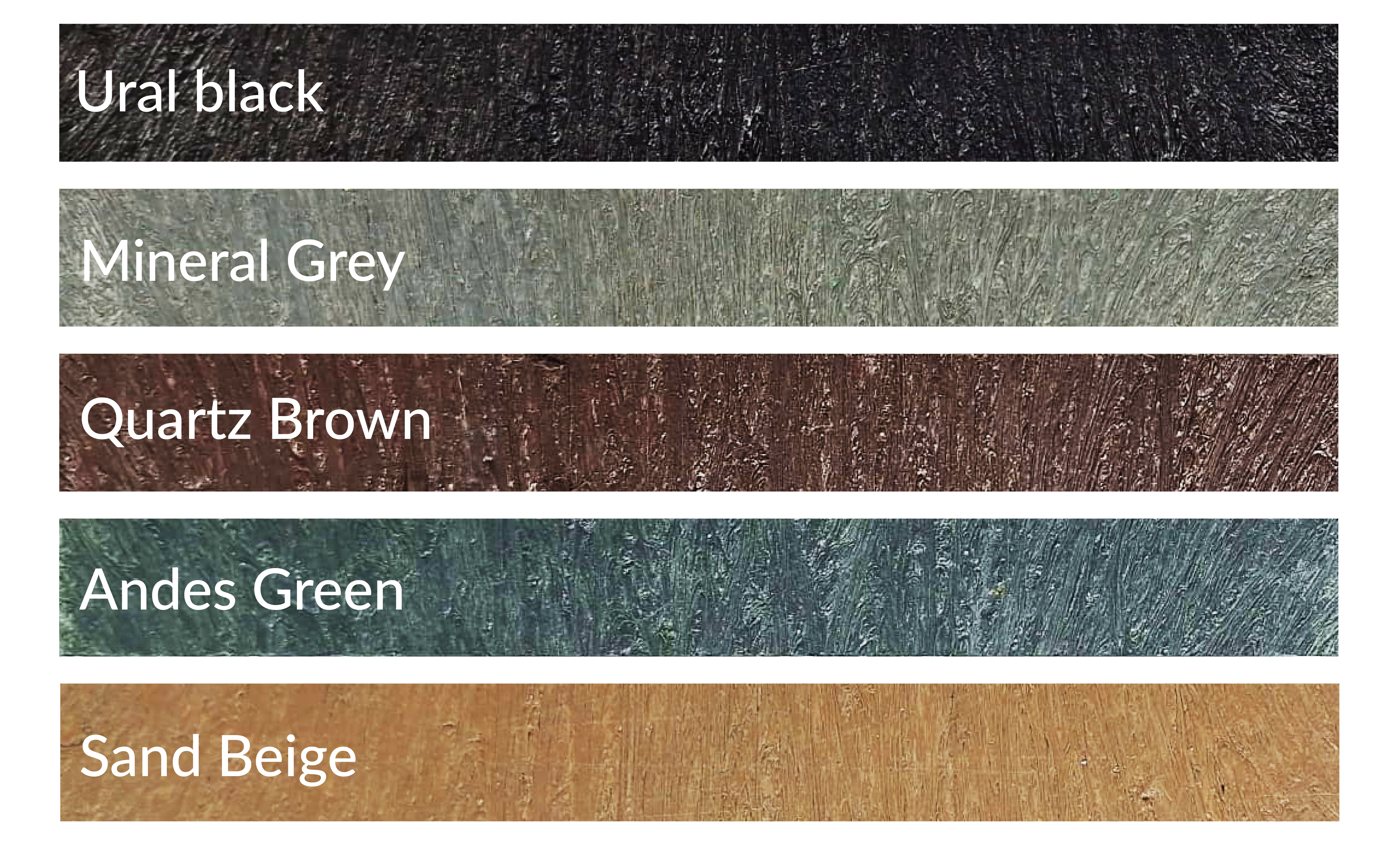 De bank is beschikbaar in de kleuren grijs, zwart, bruin, beige en groen. Er kan ook geopteerd worden voor een bicolor versie waarbij de planken van zitvlak en rugleuning grijs, zwart, bruin of groen zijn en waarbij de bankvoeten in de kleur zwart geleverd worden.