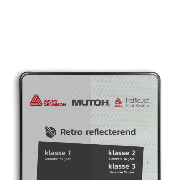 Al onze borden worden - tenzij anders aangegeven - voorzien van reflecterende folie. Deze speciale folie weerkaatst licht en is dankzij een zeer hoog helderheidsniveau altijd goed zichtbaar. Hierdoor zijn (verkeers)borden ook in het donker goed te lezen. Dankzij deze folie komt je boodschap in alle omstandigheden goed over.